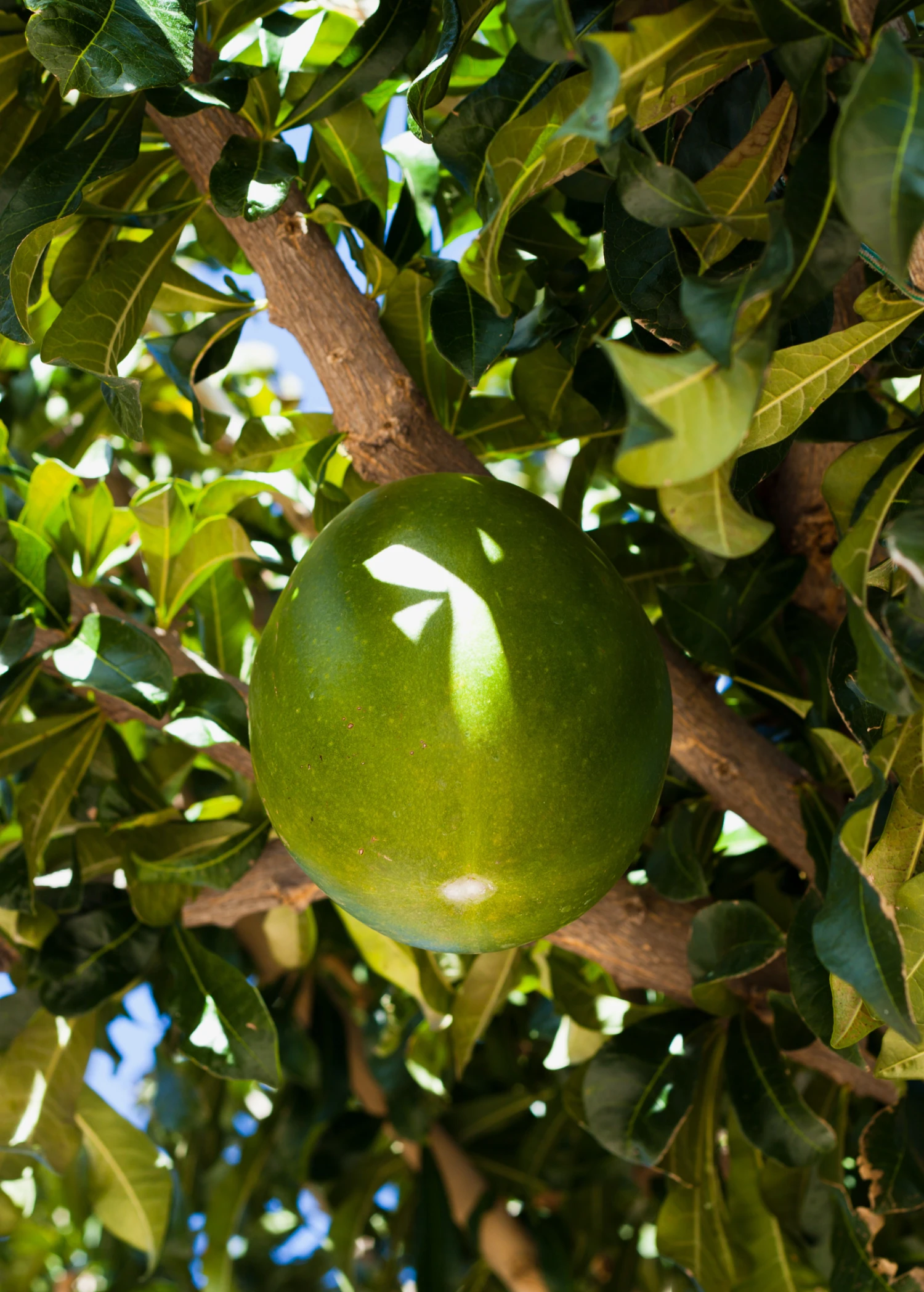 The greenish-white flowers open in the morning and last for about two days, then develop into round, baseball-sized fruit three to four months later. When ripe, the white pulp is translucent and jelly-like, with a sweet, caramel and vanilla custard flavor. It can be scooped out with a spoon, or used in ice cream, sorbets, yogurts, or fruit salads and is rich in calcium, phosphorus, and vitamins A and C.